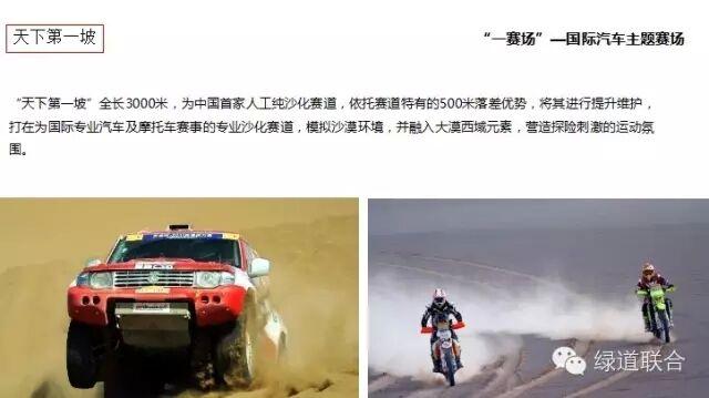 生態觀光綠道、初級體驗賽道、天下第一坡、國際越野賽道、品牌試駕基地、賽事觀看場館等。